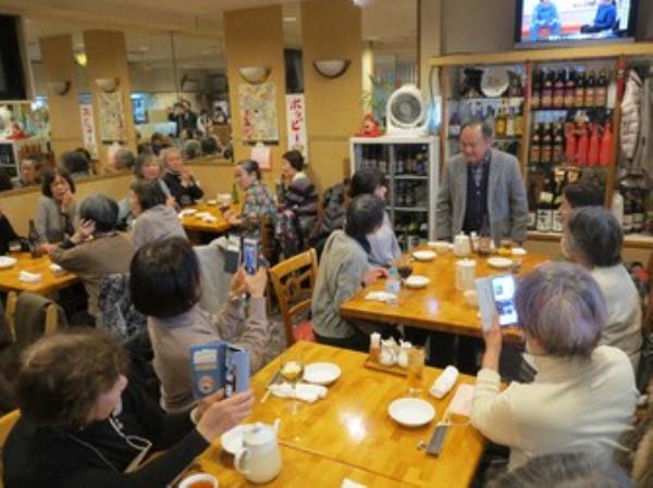 纳尔德·基恩的养子精木(右后照片)在基恩出差后经常光顾的中餐馆迎接粉丝