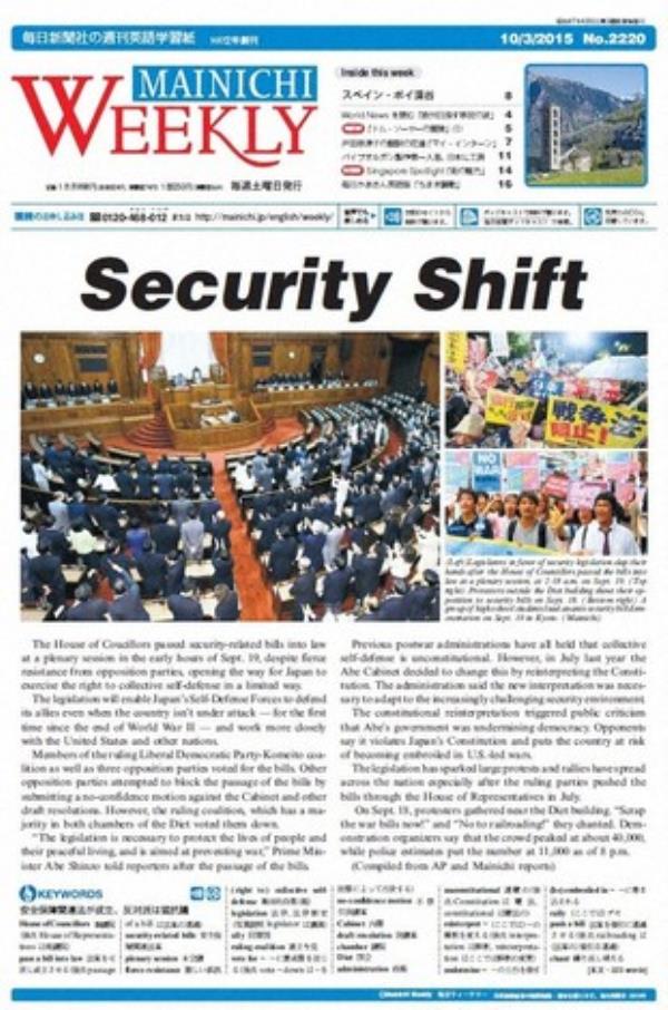 2015年10月3日,《每日新闻周刊》展示了抗议者在国会前的照片