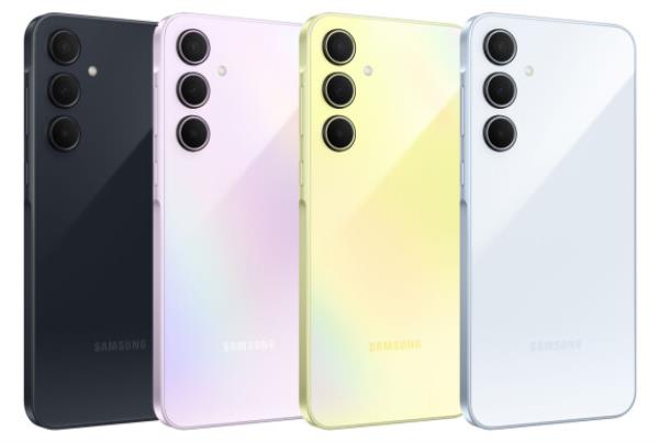 三星Galaxy A55和Galaxy A35都有四种不同的颜色可供选择。它有白色、黄色、粉色和深蓝色,或者用三星的话说,这些颜色是:酷炫冰蓝、酷炫柠檬、酷炫丁香和酷炫海军蓝。