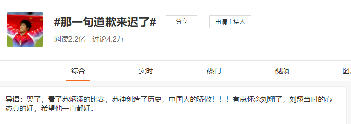 但随着国民素质及网络环境的日益改善,曾经的谩骂转为了道歉,刘翔本人表示自己也已经释然。
