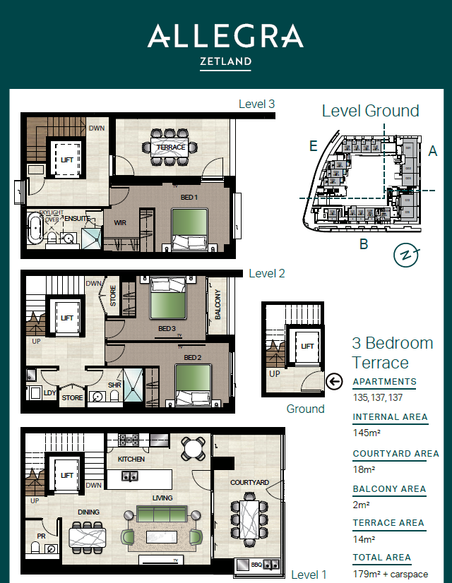 在极限量的联排外,Allegra更有周边地区首屈一指的大户型高级公寓。低层住宅可以观赏Gunyama Park的绿地美景,高层住宅则坐拥北面标志性的悉尼CBD天际线。